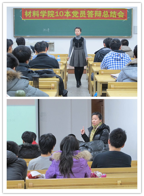 当晚18:00在正心楼310教室,10本党支部党员答辩总结会首先召开,党支部书记夏鹤天同学从积极分子培养、党员发展、党员先进性教育和支部民主生活会的开展情况等方面进行了总结,并在全体党员大会上提出了以专业为基准划分了成型材物、材料科学、焊接电封三个支部的工作建议。随后,58名党员同学对自己一年的员工工作情况进行了总结答辩,悉心听取了其他支部成员对其工作的评价和建议。在听取了支部和全体党员的总结后,辅导员付影老师肯定积极肯定了支部的工作,向全体员工党员介绍了未来发展党员的规划,并提出了具体指导意见,也对未来新成立的三个支部提出了自己的希冀。