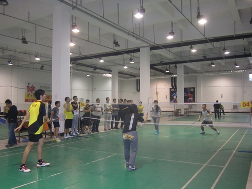 按照比赛规定,每场比赛共分男子单打、女子单打、混合双打三个回合,采取三局两胜制,比赛一开始,现场气氛异常高涨,双方场上队员聚精会神,左右跑动,每球必争,两边的同学热情的高喊着:“加油,加油!”震耳欲聋的声音此起彼伏,而挑球,扣杀,队员们的十八般武艺也让两边啦啦队大饱眼福,而到了关键赛点时,队员们更是咬紧牙关,一着不让,飞身救球,奋力一搏,,依然不放松。