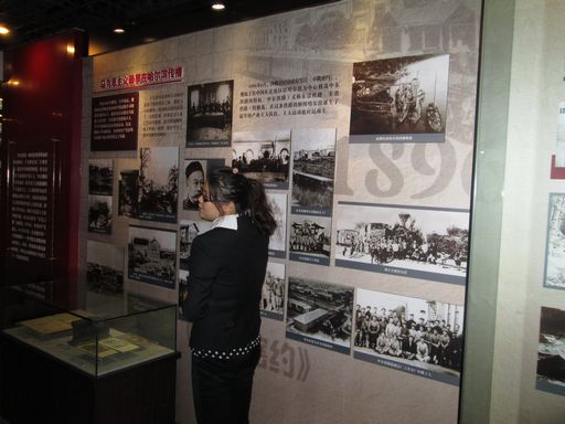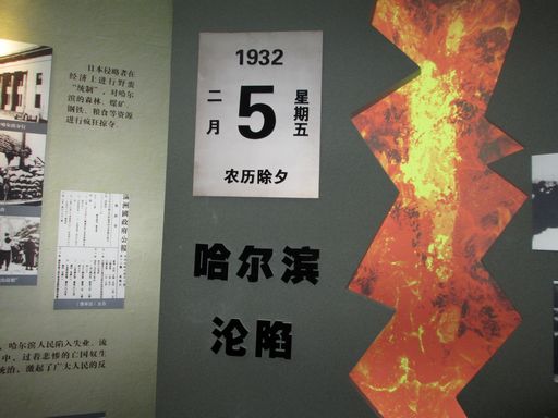 一走入党史纪念馆,迎面看到的是一尊刻有“红色之路”字样的雕塑,而从观众脚下到雕塑之间是一条由红色大理石铺就的路面,这条“红色之路”上间断地刻有几个年代数字:1953、1949、1946、1932、1923和1907。通过讲解员,我们了解到:哈尔滨党史纪念馆以1923年至1958年中国共产党在哈尔滨的历史发展为主线,生动再现了中国共产党在哈尔滨民主革命时期和社会主义建设初期带领哈尔滨人民团结奋斗、不断进取的历史。陈列分为四个展区,由中共哈尔滨组建立与活动、艰苦卓绝的抗日战争、建立民主政权支援解放战争和巩固政权全面开展经济建设组成。