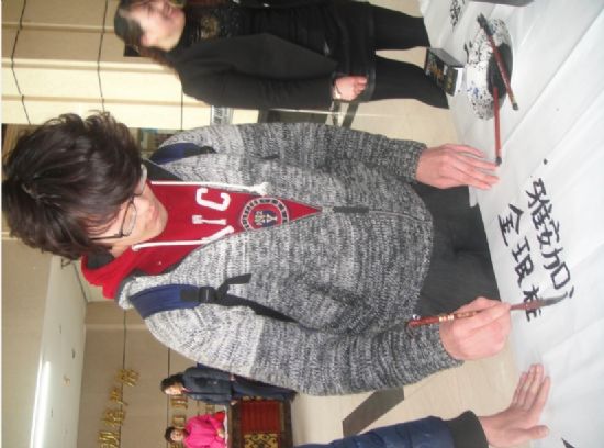 活动期间,职工们深深地被中国情与中国传统文化所吸引,并积极踊跃的加入活动之中,写下自己发自内心的祝福。其中一位来自越南的博士生给我们留下了深刻的影响,从活动开始到结束,他都一直用毛笔不停地写下“祈福雅安,雅安加油”“我爱中国”等字样。虽然我们与他们有着不同的肤色、不同的语言,但是我们大家却有着相同的中国情缘与情结。