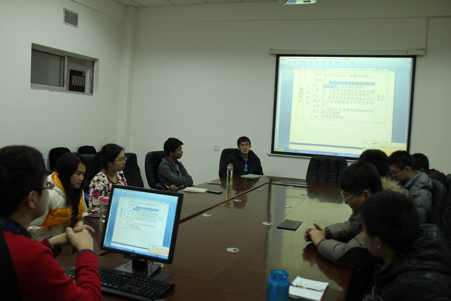 会议于4日中午1点准时在材料楼629召开。小组长贾冰先简要对研究生骨干的系列培训情况,和大家一起做了回顾。之后,讨论会正式开始。在第一个关于研究生党支部的职责工作内容的话题中,谷旭同学先发表了自己的看法,他认为现阶段支部建立在班级中,是一个很好的开展工作的机会,支部书记可以很好地考察党员素质,并有针对性地开展相应的特色活动。陈加运则认为,支部的职责不应该仅仅局限于发展党员等日常工作,更重要的是做出榜样,更多地去带动身边的同学,并开展一些真正服务于同学的活动项目,如学术沙龙等。