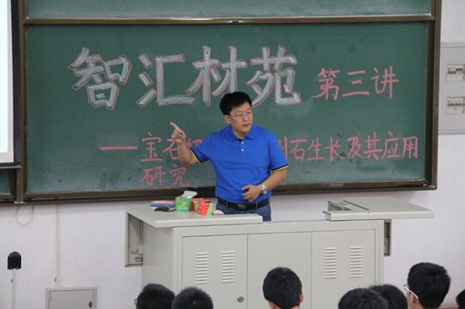 朱老师首先给同学们介绍了金刚石的一些基本知识,又介绍了一些世界上知名的钻石。接下来,朱老师介绍了从金刚石在工业生产中的重要作用,金刚石可以作为工艺品、工业中的切割工具,同时也能构成某些高精度仪器的重要零件,由于导热性能的突出,金刚石还能作为半导体装置的散热板。然后,朱老师介绍了同质外延生长金刚石和异质外延生长的金刚石的异同。最后,朱老师描述了金刚石在未来工业制造中地位。朱老师在授课过程中旁征博引,生动形象的演讲迎来了同学们多次的热烈掌声。