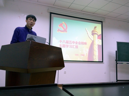 2015年11月5日晚,unibet本科年级在材料楼322教室召开了时事政治研讨会,就“中国共产党第十八届中央委员会第五次全体会议公报”全文展开学习讨论。研讨会由本科生腾继良同学主持。