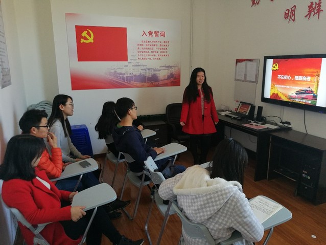 会议伊始,支部书记张巍同学向大家简要介绍了十九大报告中的13个部分,以及主要报告内容。并对十九大报告中的关键词进行了解读。接着新发展党员分享了自己对十九大报告的学习体会。宋金鹏同学用“给力”的十句话对十九大进行了总结。其中谈到十九大报告中的内容“坚持房子是用来住的,不是用来炒的”引起了同学的共鸣,他是说到我们员工党员应时刻不忘初心,牢记使命,为人民服务。王悦同学则对报告中的重要议题进行了解读,着重谈论对社会主要矛盾已经转化的理解。十九大报告指出中国特色社会主义进入新时代,社会主要矛盾已经转化为人民日益增长的美好生活需要和不平衡不充分的发展之间的矛盾。