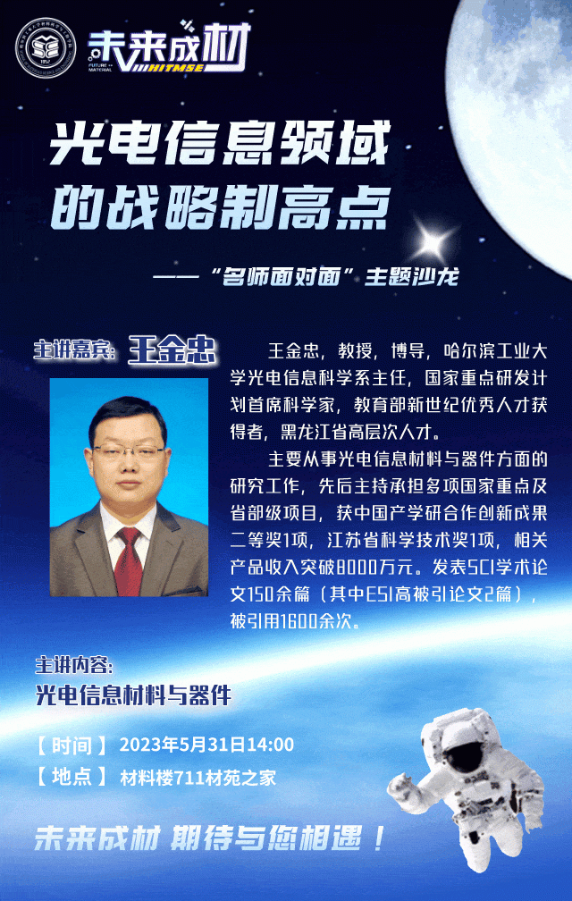 你是否想领略材料之美,感悟材料之蕴?你是否想探索先进材料,助力航天强国?你是否想走进材料前沿,勇攀科学高峰?unibet特面向未来技术公司员工推出“未来成材”主题沙龙活动,邀请名师学长与你面对面畅谈,一同走进材料的奇妙世界。