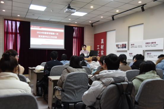 会上,宋欣益围绕2024年全国两会讲授了微党课,她结合科技、教育、人才等领域,带领大家认真学习了两会精神。随后,慕岩传达了全校师生党员基本培训第一课的通知要求,强调要提高思想认识、强化组织动员、严肃参训纪律。最后,姚喆峰安排了本年度员工党建工作重点内容。