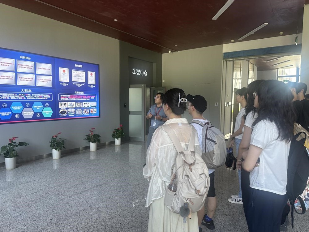 7月23日上午,实践团一行来到中国科公司宁波材料技术与工程研究所进行参观交流。首先,宁波材料所党委委员、人力资源处处长孙清华为同学们介绍了研究所的整体情况,包括研究所的科研方向、人才培养模式、近年来取得的重大科研成果以及在所工作的哈工大优秀员工发展情况,使实践团成员们有了更加全面的了解。接下来,实践团分别参观了海洋关键材料重点实验室、原子尺度与微纳制造实验室、机器人与智能制造装备技术实验室,分别了解了实验室在海洋材料方面、微纳制造技术方面、智能机器人方面的创新研究进展、广泛应用以及未来发展方向,让同学们对于科技成果转化有了更加直观的认识。